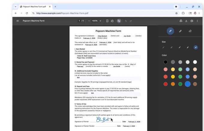 Another practical addition is the PDF annotations feature, which lets you add notes to a PDF or highlight its text from the browser. This means you don’t have to download the PDF and then open it in another application to work with its content. The option, a long time coming, could make it much simpler to do basic PDF tasks, like digitally signing a document, filling out a form, making notes within a file or personal document, and more.