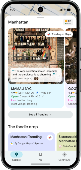 As for the updated Explore tab, Google has made it easier and faster to find trending spots near you. Users can now swipe up to see trending and popular restaurants, activities, and sights nearby, such as a new cafe that just opened up or a quirky art gallery around the corner.